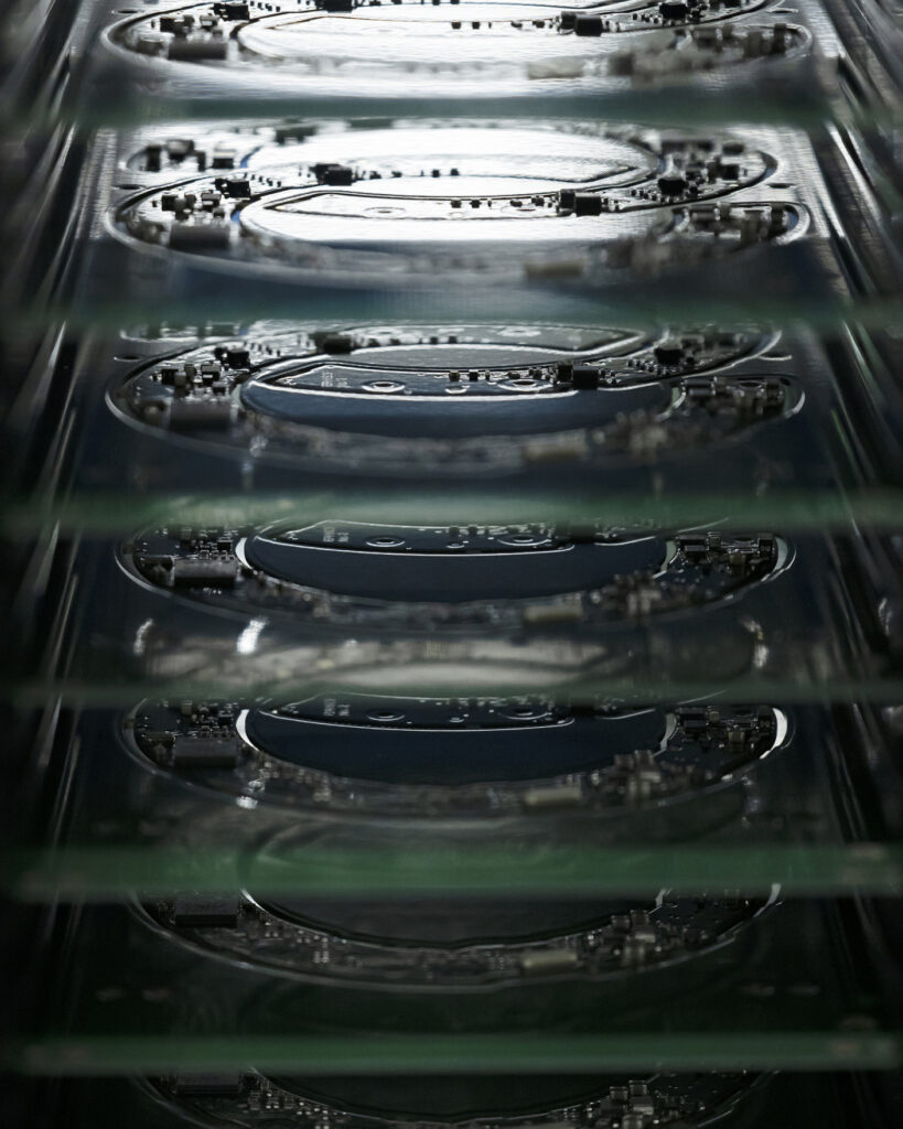 การสลักรหัสดังกล่าวใช้เครื่องกัดหัวเล็กพิเศษที่มีความละเอียดสูงมาก กระบวนการนี้ต้องทำด้วยความพิถีพิถัน และใช้เวลาประมาณ 3 นาทีต่อเลนส์หนึ่งตัว